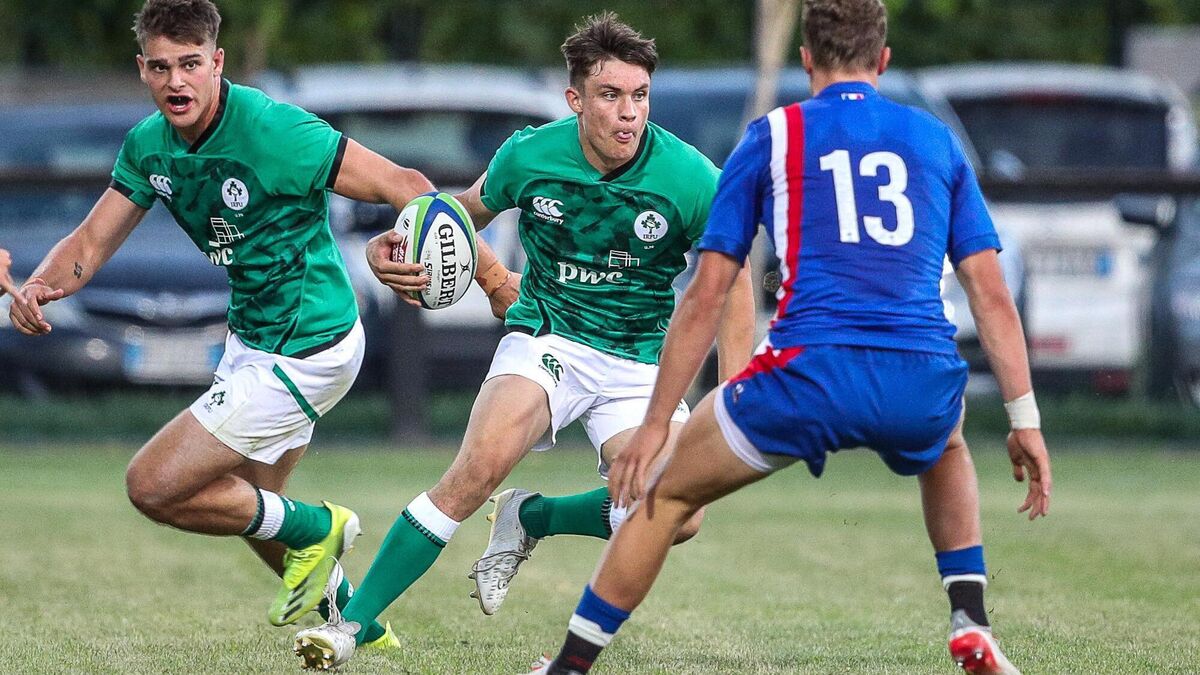SLOW START: Reuben Crothers of Ireland in action against Émilien Gailleton of France during the Six Nations U20 summer series match between Ireland and France at Payanini Centre in Verona, Italy. Pic: Roberto Bregani/Sportsfile