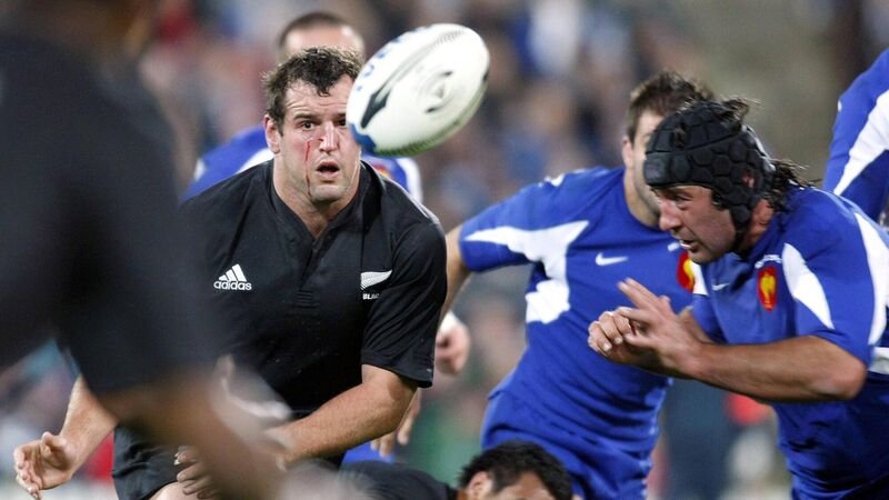 DEMENTIA DIAGNOSIS: Carl Hayman (L) spins out the ball despite the pressure by France's Olivier Sourgens (R) during the rugby international match between New Zealand and France at Eden Park in Wellington, 09 June 2007. Pic: AFP Photo/Damien Meyer.