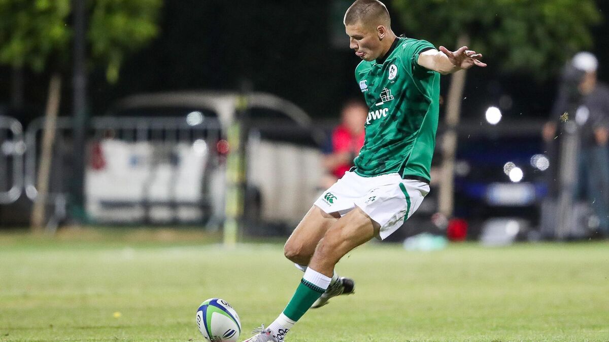CLUTCH: Sam Prendergast of Ireland converts his side's winning penalty during the Six Nations U20 summer series match between Ireland and England at Payanini Centre in Verona, Italy. Pic: Roberto Bregani/Sportsfile