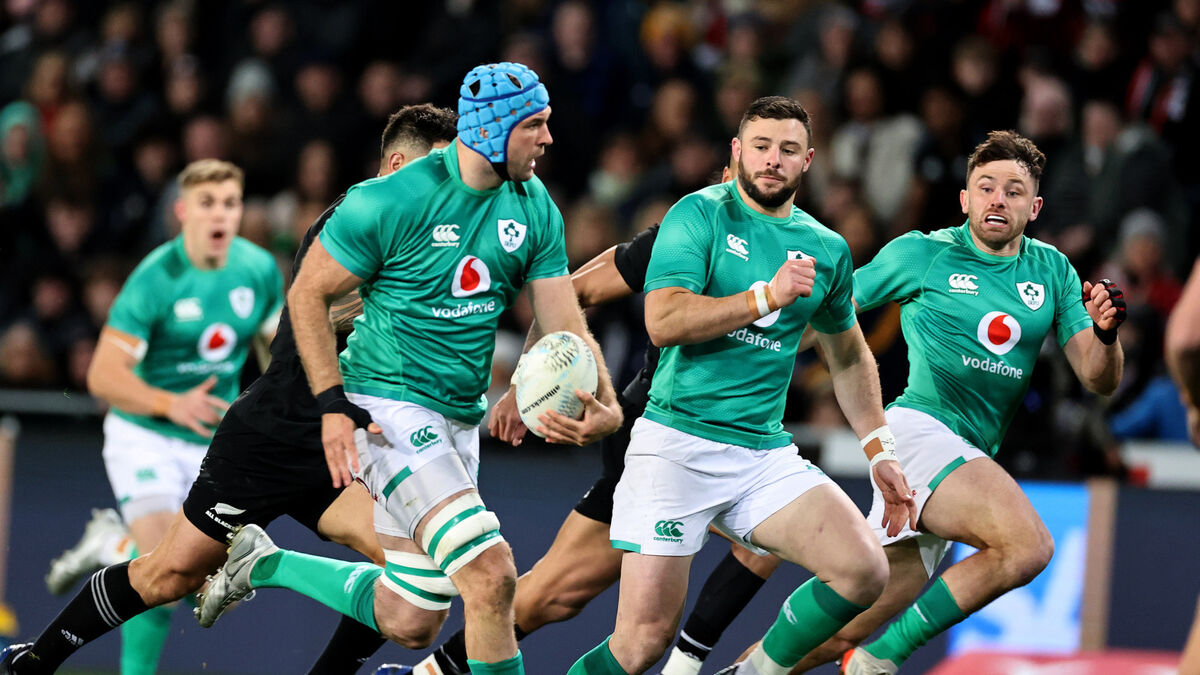ON THE BURST: Ireland’s Tadhg Beirne Robbie Henshaw and Hugo Keenan. Pic: ©INPHO/Billy Stickland