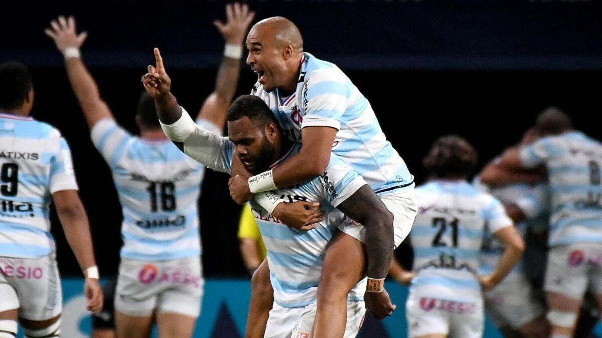 HAPPIER TIMES: Racing's Virimi Vakatawa and former teammate Simon Zebo celebrate reaching the Heineken Champions Cup final in 2020. Pic: INPHO/Dave Winter