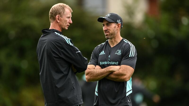 BACK IN DUBLIN: Backs coach Andrew Goodman speaks with head coach Leo Cullen during a Leinster Rugby squad training session at UCD in Dublin. Pic: Harry Murphy/Sportsfile