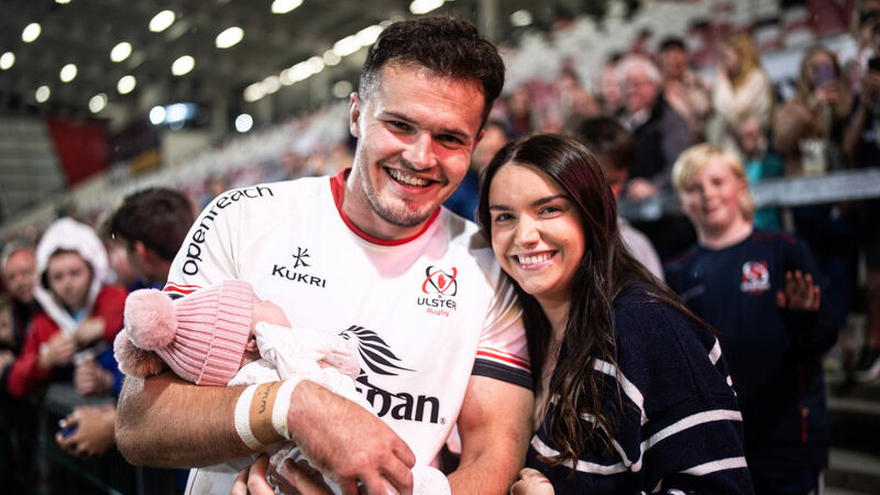 BACK IN: Ulster's Jacob Stockdale with his wife Hannah and their daughter Phoebe (4 weeks old). ©INPHO/Tom Maher