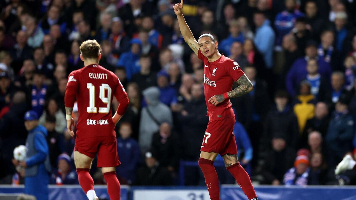 LANGUAGE BARRIER: Liverpool’s Darwin Nunez celebrates scoring their side’s third goal against Rangers last week. Pic: Steve Welsh/PA Wire