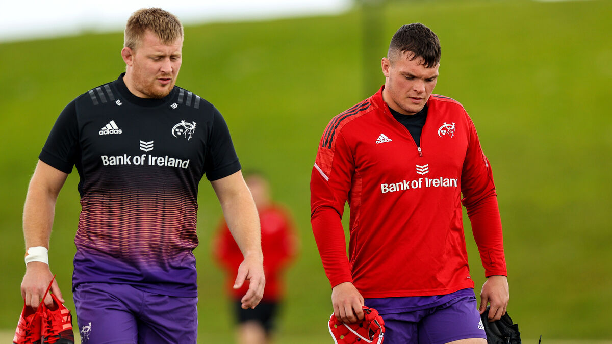 John Ryan, left, and Mark Donnelly at Munster training earlier this year. Picture: INPHO/Ben Brady