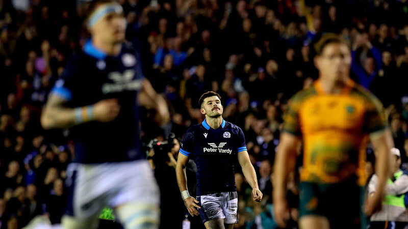 HIT AND HOPE: Scotland’s Blair Kinghorn misses a late penalty to win the game.Pic: INPHO/Ryan Byrne