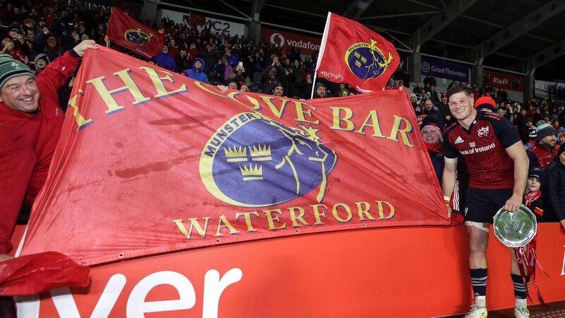 ONE FOR THE AGES: Munster's Jack O’Donoghue celebrates with fans after the game. Pic: INPHO/Laszlo Geczo