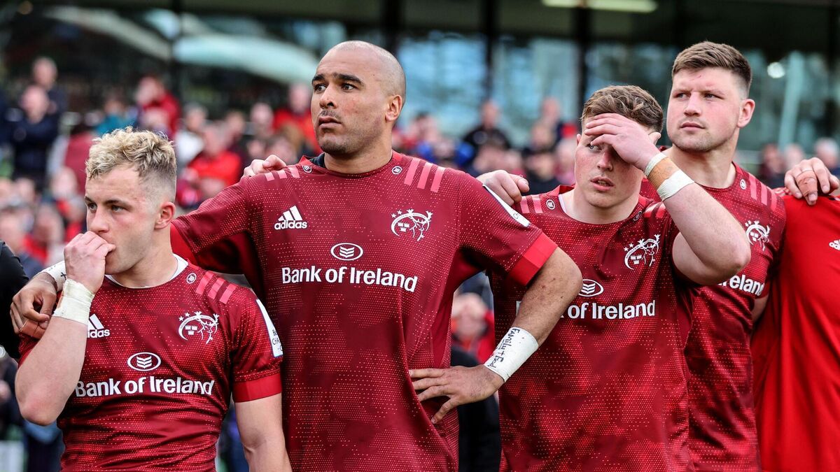 LAST TIME OUT: Munster's Craig Casey, Simon Zebo, Josh Wycherley and Fineen Wycherley dejected after their loss to Toulouse.
