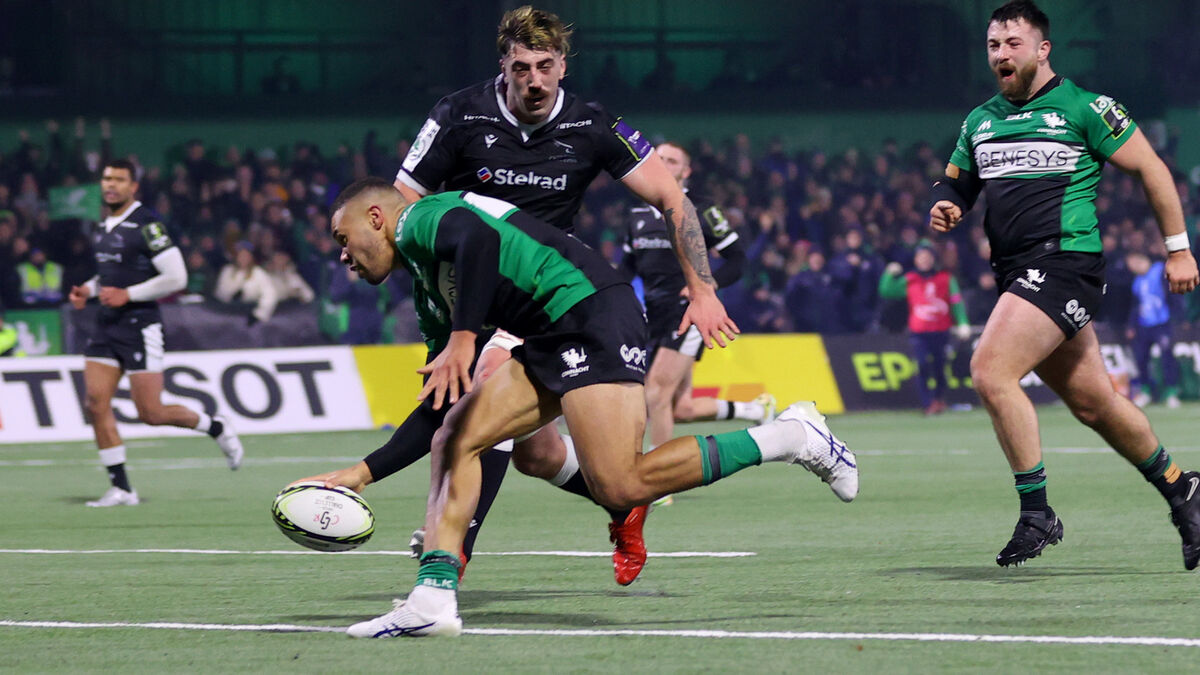 SOLO TRY: Connacht’s Adam Byrne breaks free to score a try. Pic: INPHO/James Crombie