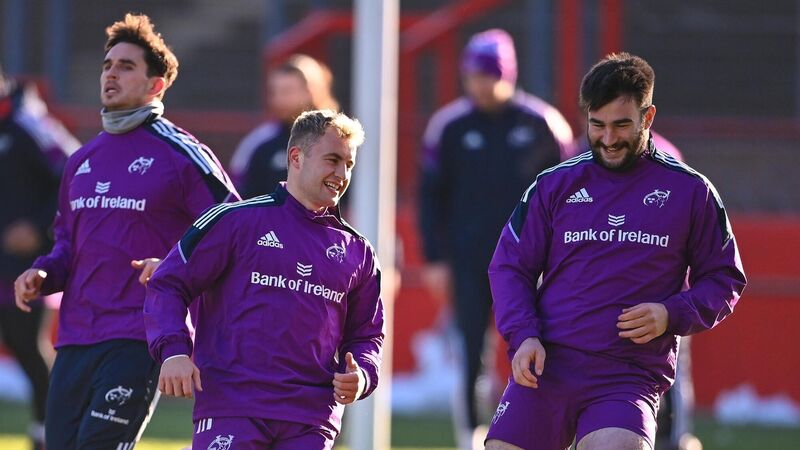 CHALLENGE: Players, from left, Joey Carbery, Craig Casey and John Hodnett during a Munster Rugby squad training session at Thomond Park in Limerick. Pic: Piaras Ă“ MĂdheach/Sportsfile
