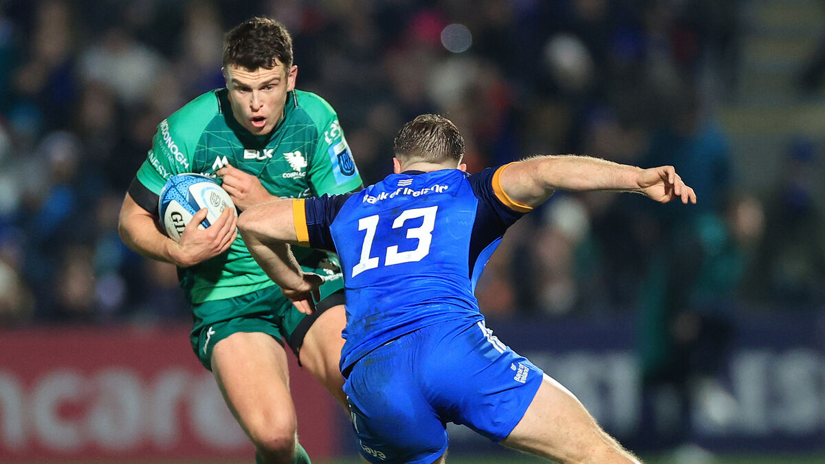 RUN NEEDED: Connacht’s Tom Farrell and Liam Turner of Leinster. ©INPHO/James Crombie