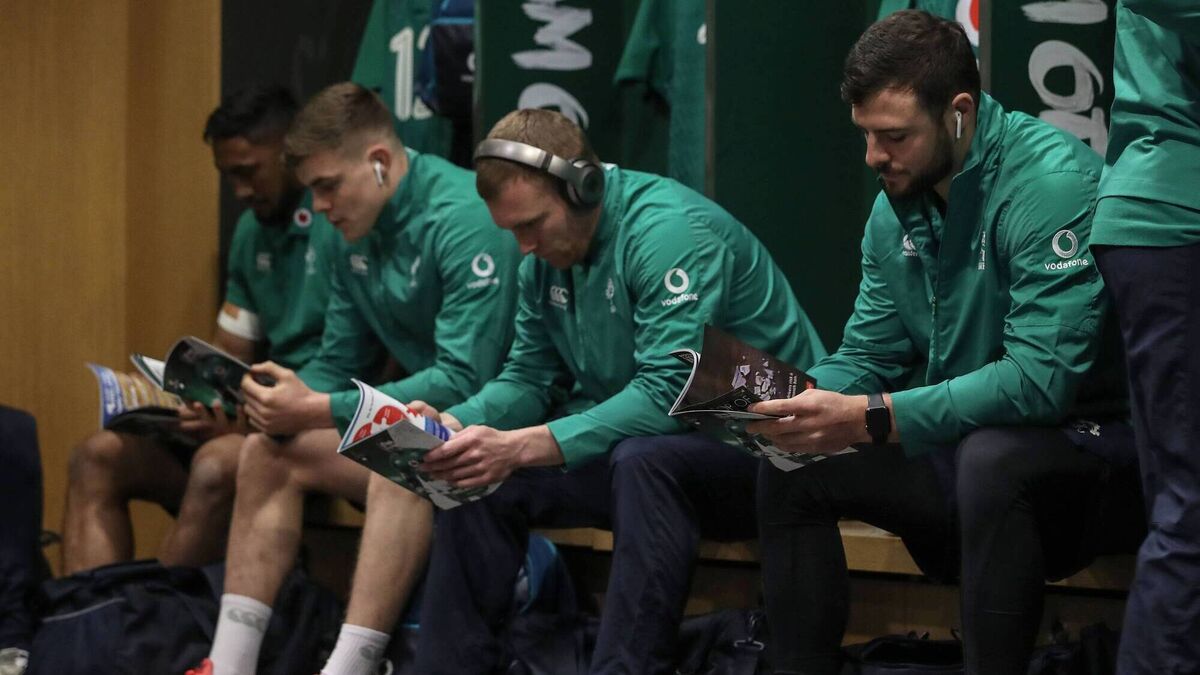 WIRED FOR SOUND: Keith Earls and Robbie Henshaw in the Ireland dressing room. Picture: INPHO/Dan Sheridan