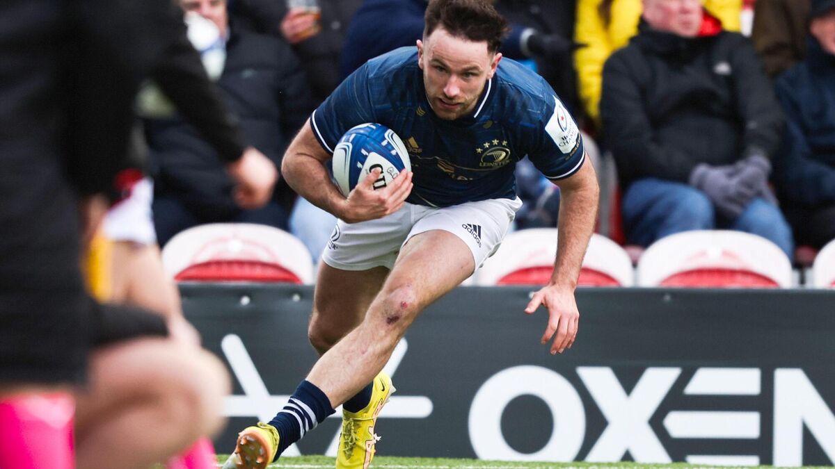 TRY SCORER: Leinster's Hugo Keenan runs in to score a try. Pic:Â INPHO/Tom Maher