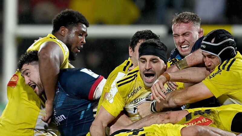 IN THE THICK OF IT: Jeffery Toomaga-Allen of Ulster is tackled by Georges Henri Colombe of La Rochelle during the Heineken Champions Cup Pool B Round 3 match. Pic: Ramsey Cardy/Sportsfile