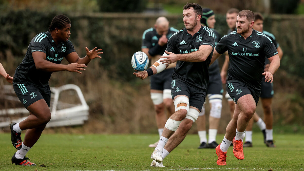 OPPORTUNITY KNOCKS:Â Temi Lasisi, Will Connors and Marcus Hanan during a Leinster training session. Pic:Â INPHO/Ben Brady