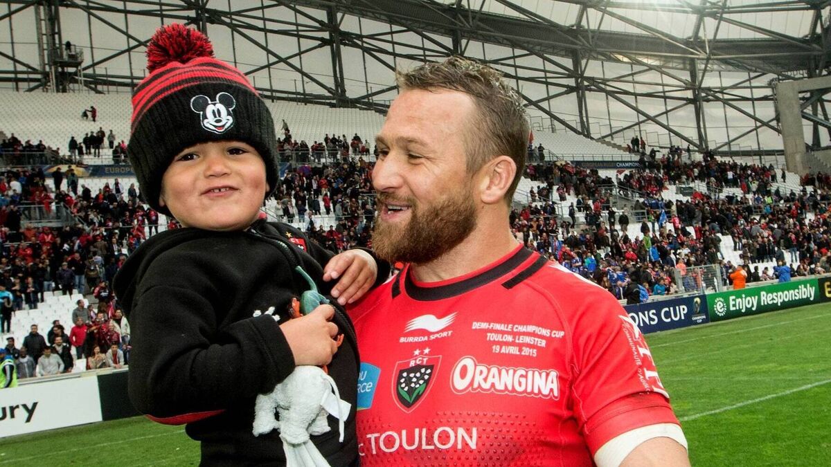 2015 GLORY: Matt Giteau with his son Levi. Pic: ©INPHO/James Crombie