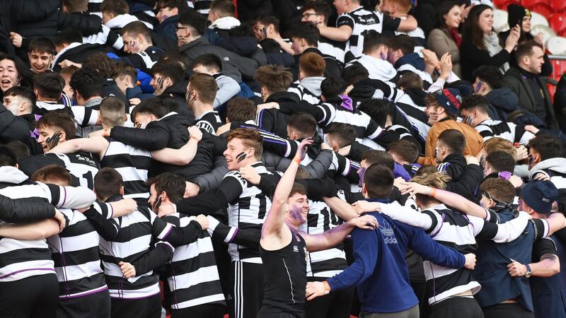 POZNAN: PBC supporters perform the huddle as they celebrate there win over Rockwell in the Pinergy Munster senior schools cup game at Musgrave Park. Pic: Eddie O'Hare
