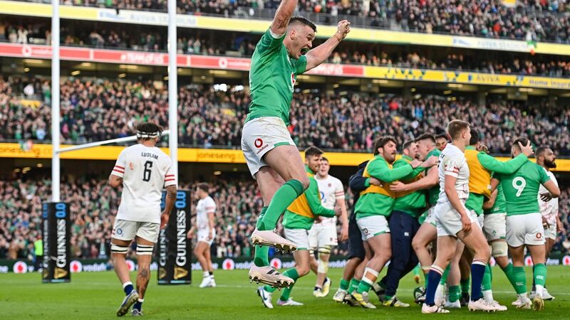 GREEN GIANTS: Johnny Sexton celebrates Dan Sheehan's opening try against England.