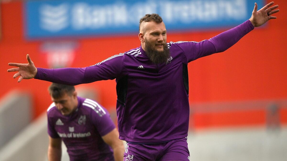 FLYING HIGH: RG Snyman during a Munster Rugby squad training session at Thomond Park in Limerick. Pic: Harry Murphy/Sportsfile