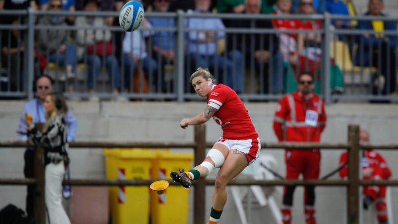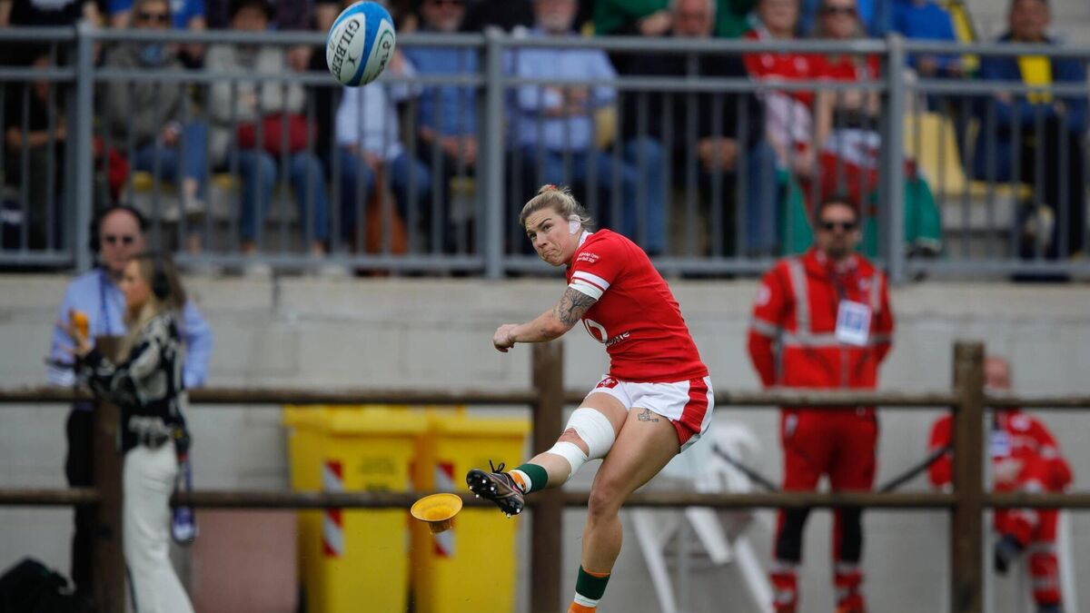 ADDING THE EXTRAS: Keira Bevan of Wales converts a try during the TikTok Women's Six Nations match against Italy at Stadio Sergio Lanfranchi in Parma, Italy. Pic: Timothy Rogers/Getty Images