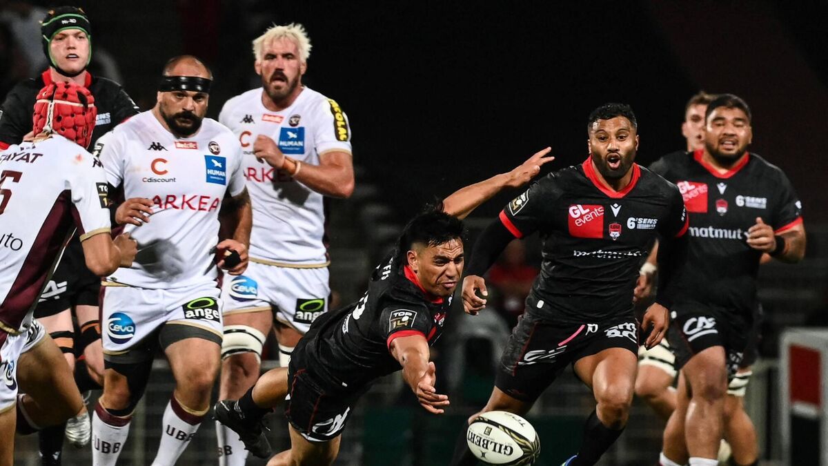 Lyon's New Zealander wing Josiah Maraku fights for possession in Sunday's Top 14 'barage' against Bordeaux-Begles