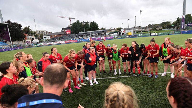 WE GO AGAIN: Munster head coach Niamh Briggs leads the team talk after the loss to Leinster last weekend. Pic: ©INPHO/Tom Maher
