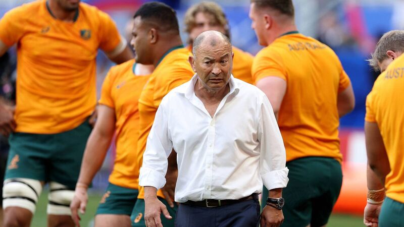 Eddie Jones, Head Coach of Australia, during the warm-up prior to the Rugby World Cup France 2023 match between Australia and Georgia at Stade de France on September 09, 2023 in Paris, France. (Photo by Warren Little/Getty Images)