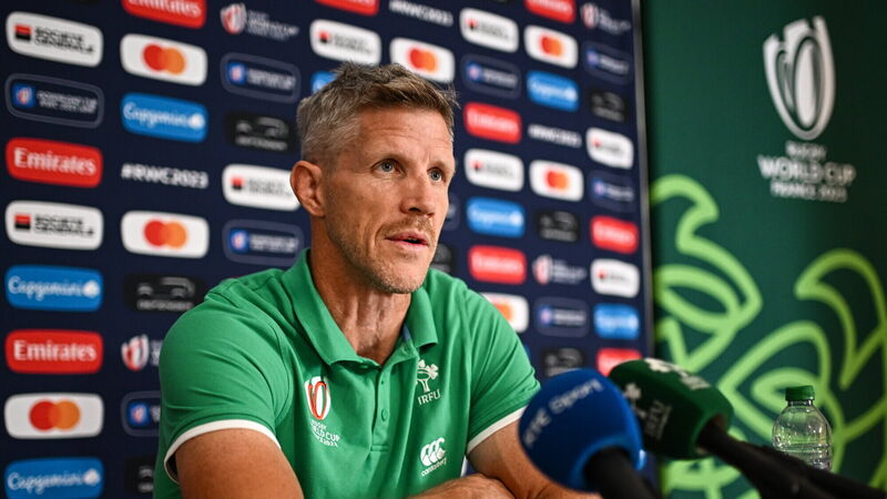 28 September 2023; Defence coach Simon Easterby during an Ireland rugby media conference at Complexe de la Chambrerie in Tours, France. Photo by Harry Murphy/Sportsfile