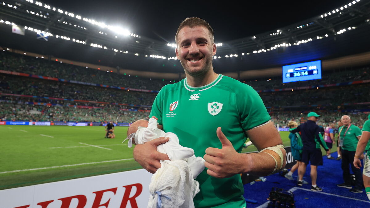 BABE IN ARMS: Ireland’s Stuart McCloskey with his newborn baby after the game. Picture: INPHO/Dan Sheridan