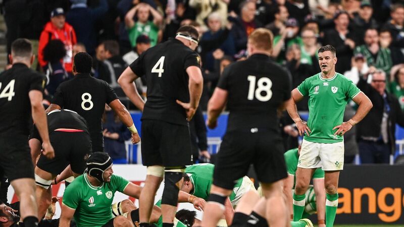 DIFFERING EMOTIONS: Jonathan Sexton of Ireland reacts at the end of the 2023 Rugby World Cup quarter-final match between Ireland and New Zealand. Pic: Harry Murphy/Sportsfile