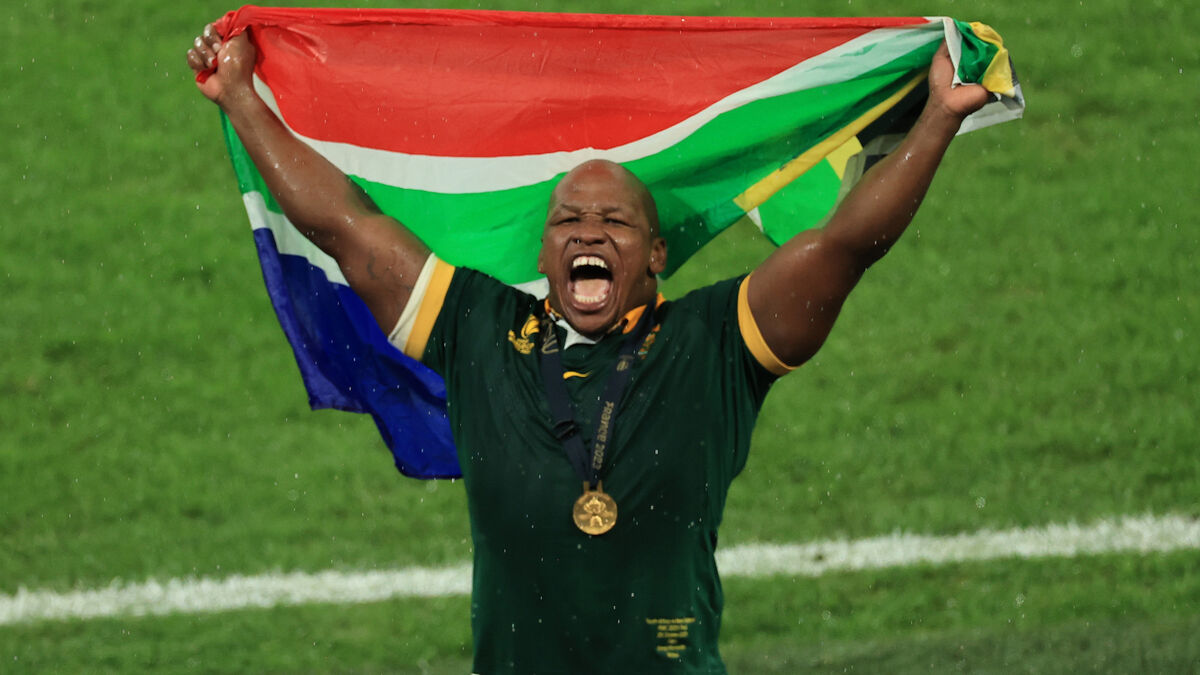 CELEBRATIONS: Bongi Mbonambi celebrating after South Africa’s RWC win. Rugby saved him from the worst side of life, fuelling his passion and love for the game.