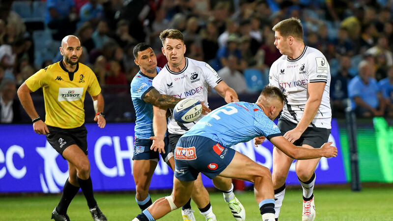 BULL RING: Alex Lewington receives a pass from Owen Farrell of Saracens as they lose to the Bulls. Pic: INPHO/Steve Haag Sports/Deon van der Merwe