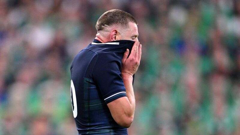 FRUSTRATED: A dejected Finn Russell after defeat to Ireland in Paris in October's Word Cup pool clash.