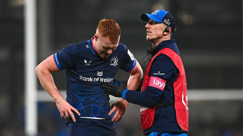 SOUR NOTE: Ciarán Frawley of Leinster receives treatment with Leinster senior physiotherapist Darragh Curley. Pic: Harry Murphy, Sportsfile