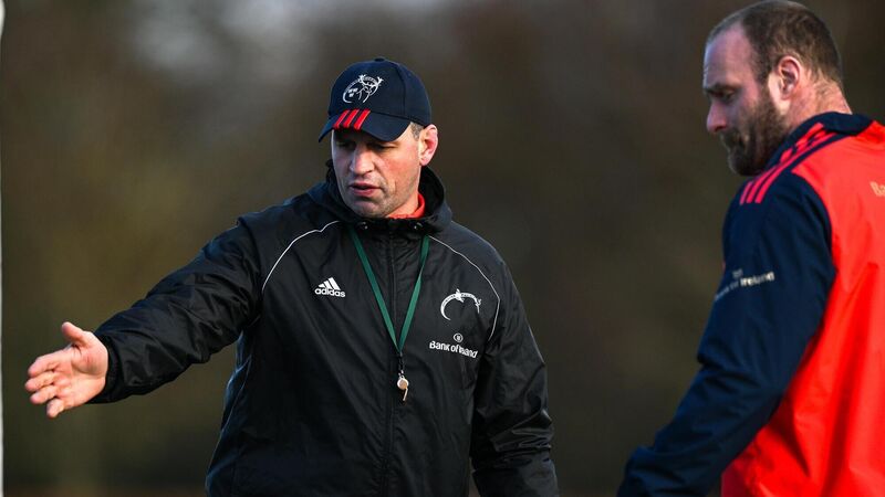 Defence coach Denis Leamy, left, with Oli Jager at University of Limerick this week. Picture: Brendan Moran/Sportsfile