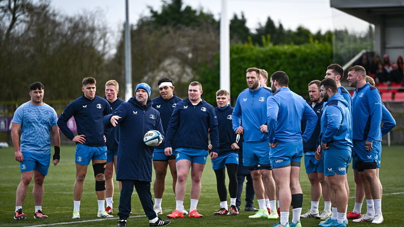 SETTLING IN: Senior coach Jacques Nienaber speaks to the forwards during a training session on the Leinster Rugby 12 County Tour at Mullingar RFC in Westmeath. Pic: Harry Murphy/Sportsfile