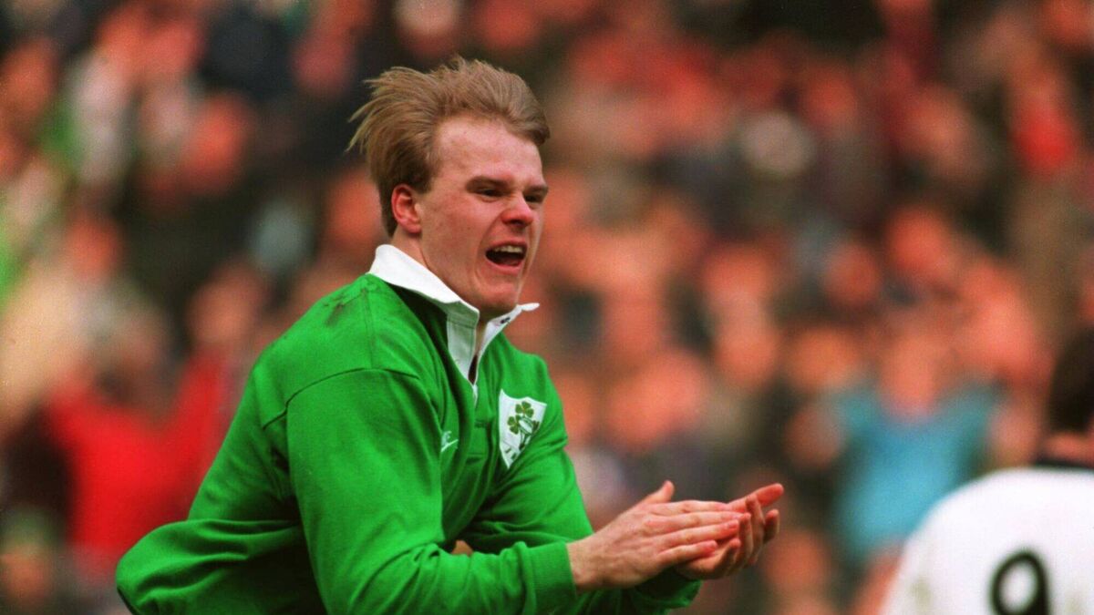 BRIDGING A 12-YEAR GAP: Ireland's Simon Geoghegan runs off celebrating after beating England 13-12 in the Five Nations in 1994. Pic: David Rogers, Allsport
