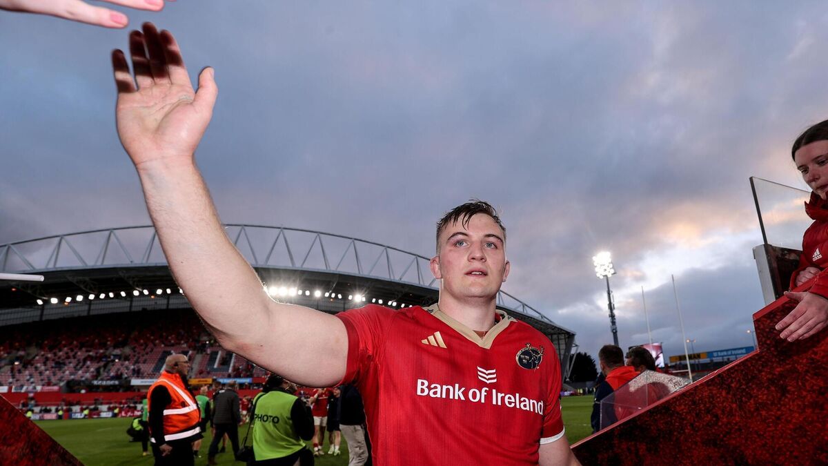 Munster’s Gavin Coombes celebrates winning with the fans