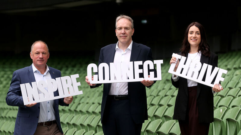 IRFU performance director David Humphreys, IRFU chief executive officer Kevin Potts and IRFU strategy and projects manager Kate Binchy. Pic: Dan Sheridan, Inpho