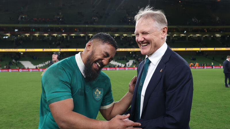 FRIENDS REUNITED: Ireland's Bundee Aki and Australia's Head Coach Joe Schmidt after the game. Pic: INPHO/Billy Stickland