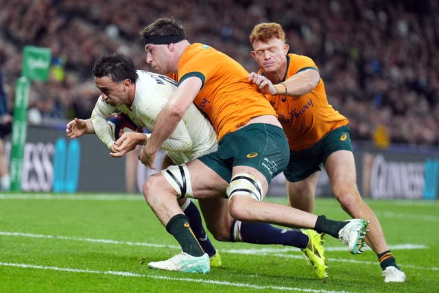 Helped by a favourable penalty count, they tore into the Wallabies with the electric Immanuel Feyi-Waboso thwarted by Max Jorgensen and Joe Heyes held up over the line, introducing the theme for the opening 40 minutes.