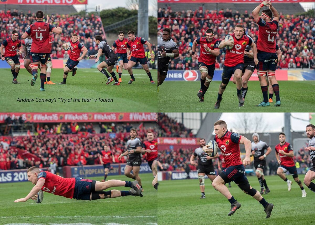 Everyone stands still because they think the ball is going over for a throw in. Conway, his feet two inches from the line, stretches over the line, catches the ball and slaloms his way past four defenders. The big problem was Jean Kleyn was standing in the middle but he had the wit to put up his arms so as not to be seen to interfere. Ian Keatley converted for the win and we all went home feeling so elated, I think that try is etched in everyone's mind and will be forever.