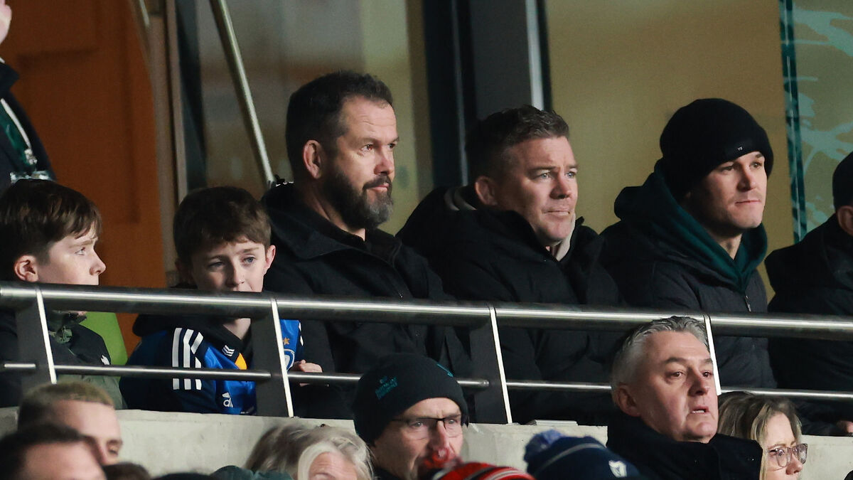 Ireland's Andy Farrell, John Fogarty and Johnny Sexton in attendance at Leinster v La Rochelle. Pic: Morgan Treacy/Inpho