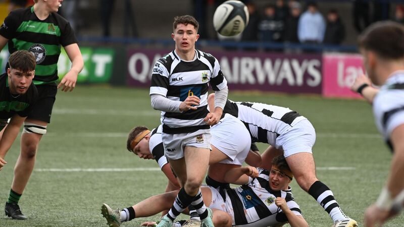 Frankie Óg Sheahan watches his pass for Presentation Brothers College, Cork against Bandon Grammar School in the Munster Schools Senior Cup Semi-Final Qualifier at Virgin Media (Musgrave) Park. Presentation Brothers College Cork vs Bandon Grammar School, Co Cork. Picture: Larry Cummins