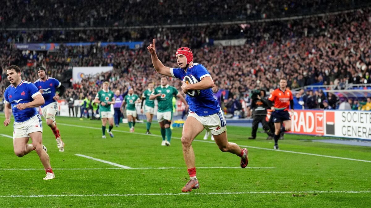UP AND RUNNING: France's Louis Bielle-Biarrey breaks through to score their first try of the game during the Guinness Men's Six Nations match at the Stade de France, Paris. Picture date: Thursday February 5, 2026. PA Photo. Photo credit should read: Adam Davy/PA Wire
