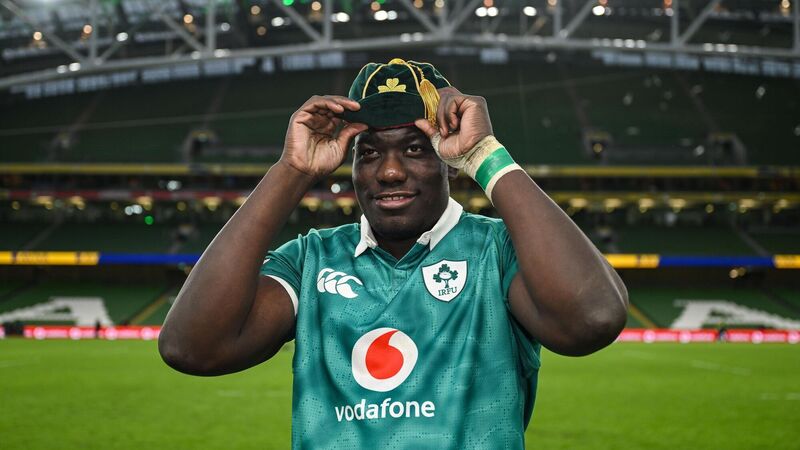 IF THE CAPS FITS: Edwin Edogbo of Ireland with his first cap after the Guinness 6 Nations Rugby Championship match against Italy. Pic: Brendan Moran/Sportsfile