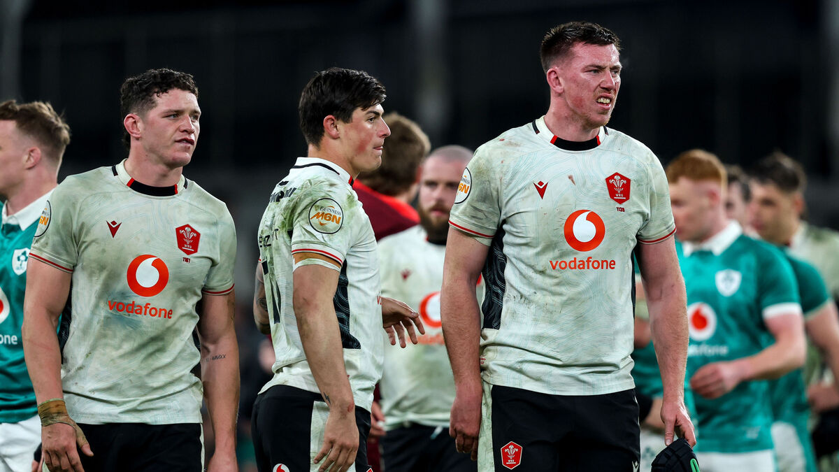 Wales' James Botham, Louis Rees-Zammit and Adam Beard. Pic:Â Ben Brady/Inpho