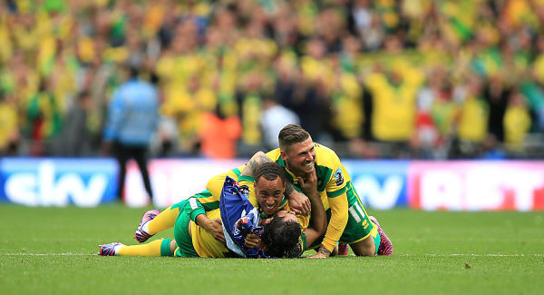 Cameron Jerome and Nathan Redmond put Norwich 2-0 up inside 15 minutes as the Canaries returned to the top flight a year after relegation.