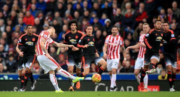 The manner of Stoke’s second goal was just as embarrassing for United. Ashley Young flung his right hand up in the air to block Arnautovic’s cross. Kevin Friend awarded a free-kick, which Bojan took. His shot cannoned off the wall and fell to Arnautovic, who hit the fiercest of drives into the top corner.