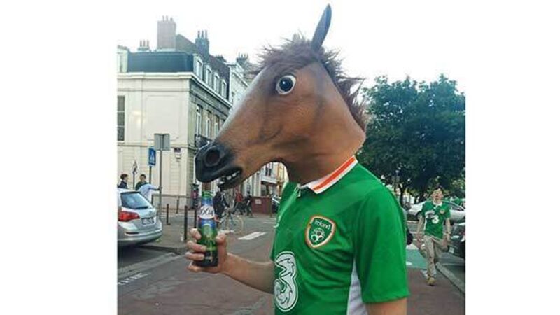 Watch: Irish fan wearing horse mask mobbed after scoring goal through open window